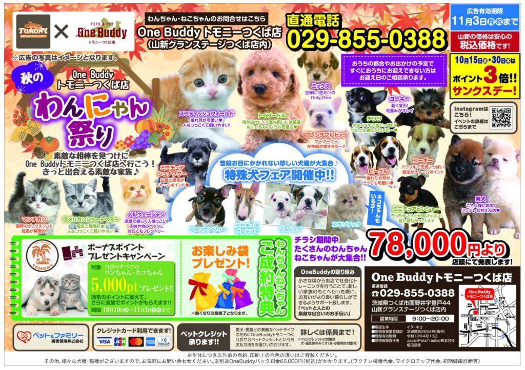 OneBuddyトモニーつくば店秋のわんにゃん祭りを開催!