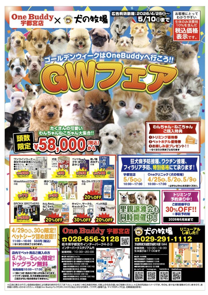 OneBuddy宇都宮店はGWフェア!開催中‼