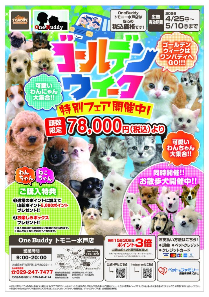OneBuddyトモニー水戸店はゴールデンウィーク特別フェアを開催中!